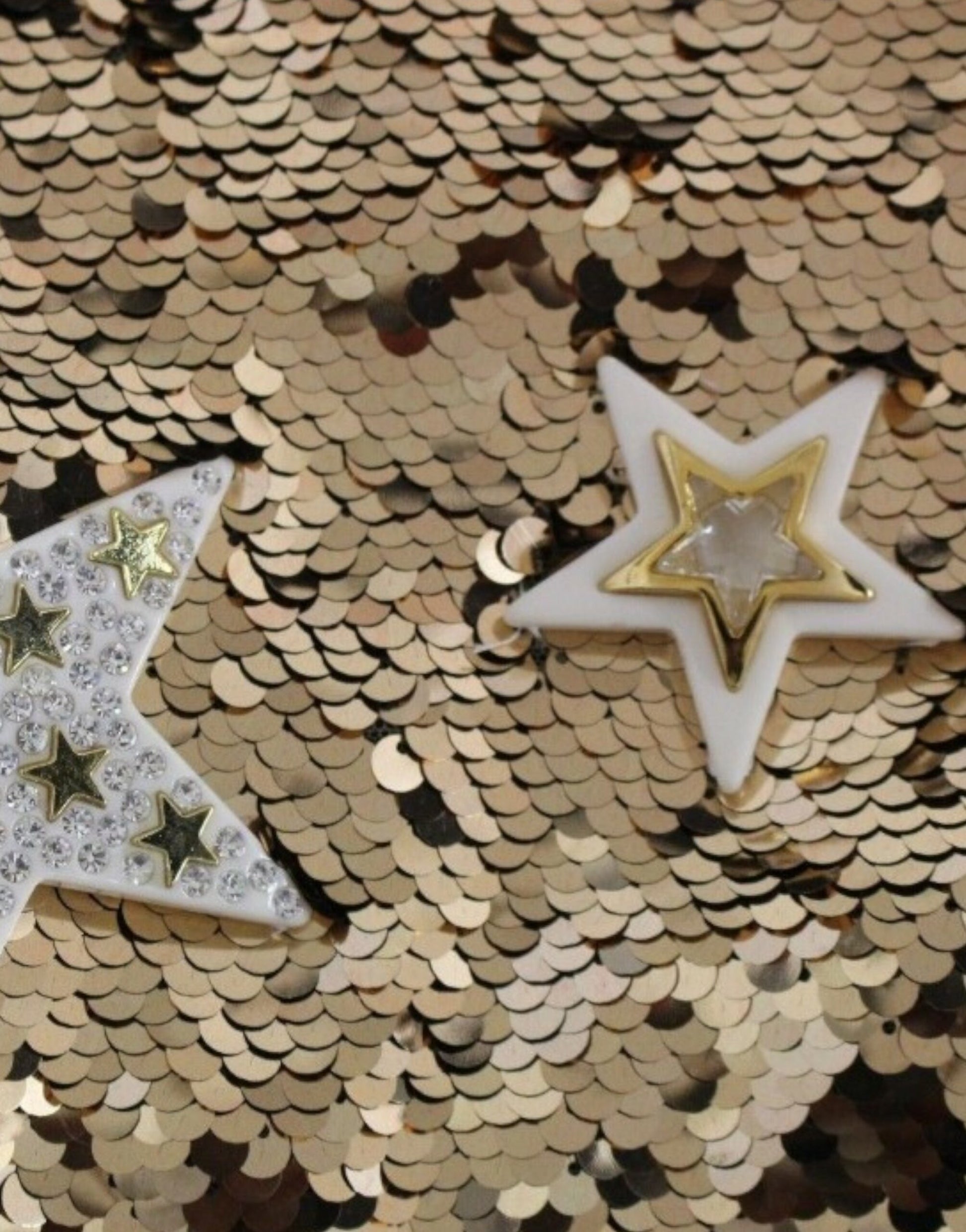 Wunderschönes, brandneues, 100% authentisches DOLCE & GABBANA Masterpiece Kleid mit goldenen Pailletten und Swarovski-Sternen in klarem Kristall. Dieser Artikel stammt aus der exklusiven MainLine Dolce & Gabbana Kollektion.